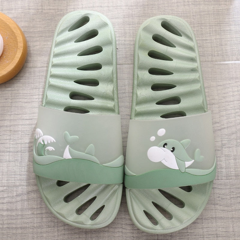 Women's Slippers Hollow Lovely Cartoon Slides Women Fashion Female Summer Slippers PVC Massage Bathing Slippers