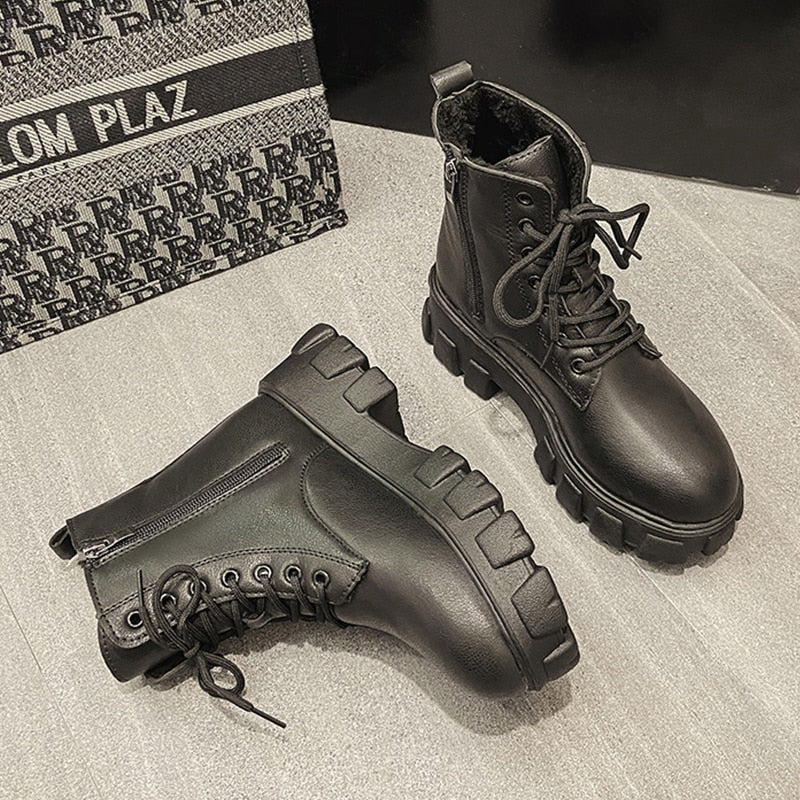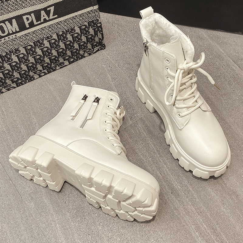 Women's White Ankle Boots 2021 Ladies Chunky Winter Boot Female Shoes Black Platform Combat Boots Fur Plush Designer Punk Gothic