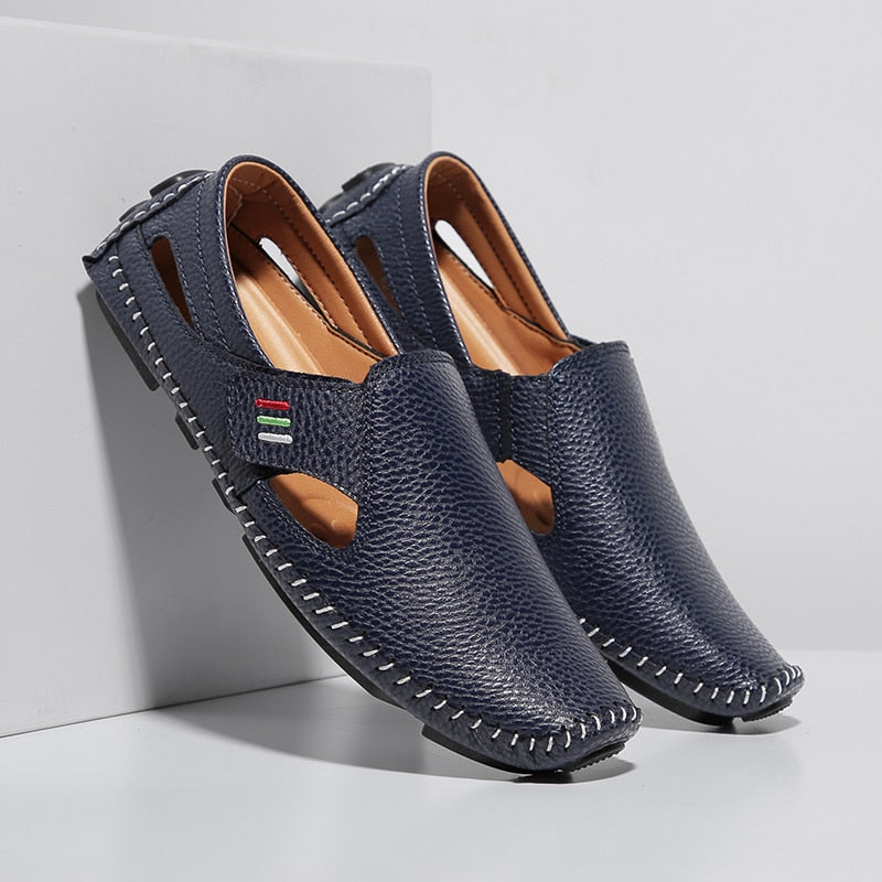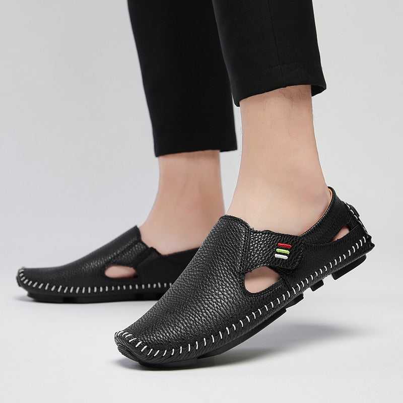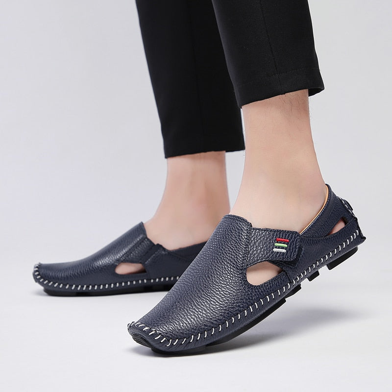 YRZL Loafers Men Breathable Driving Flats Velcro Casual Slip-on Shoes PU Leather Plus Size 48 Mocasines