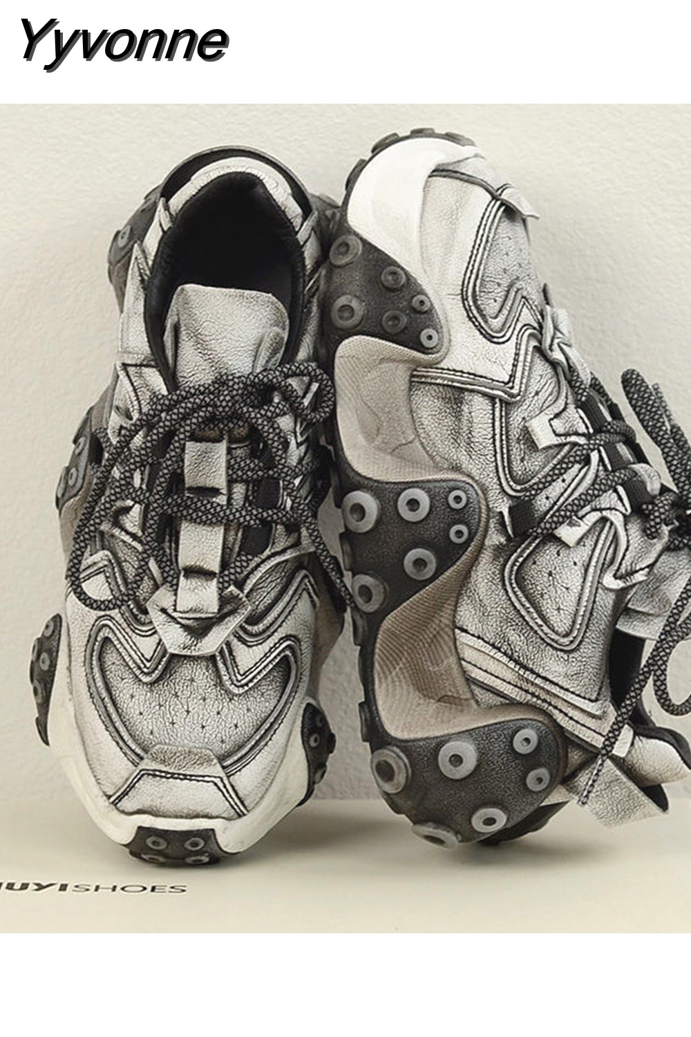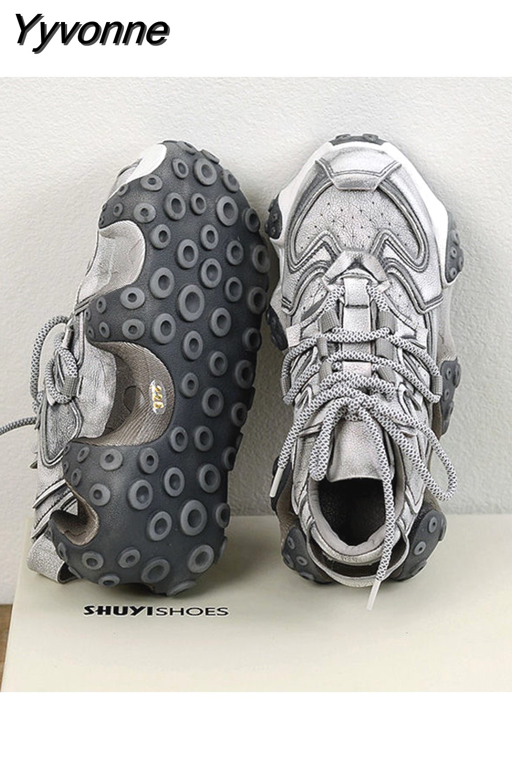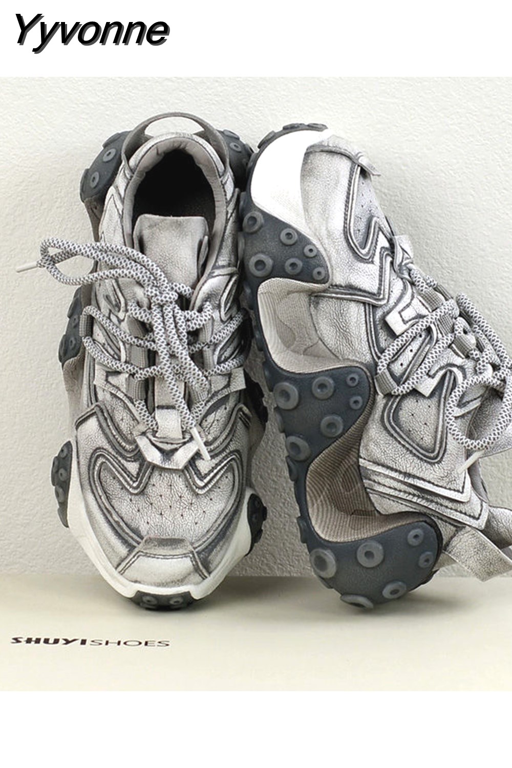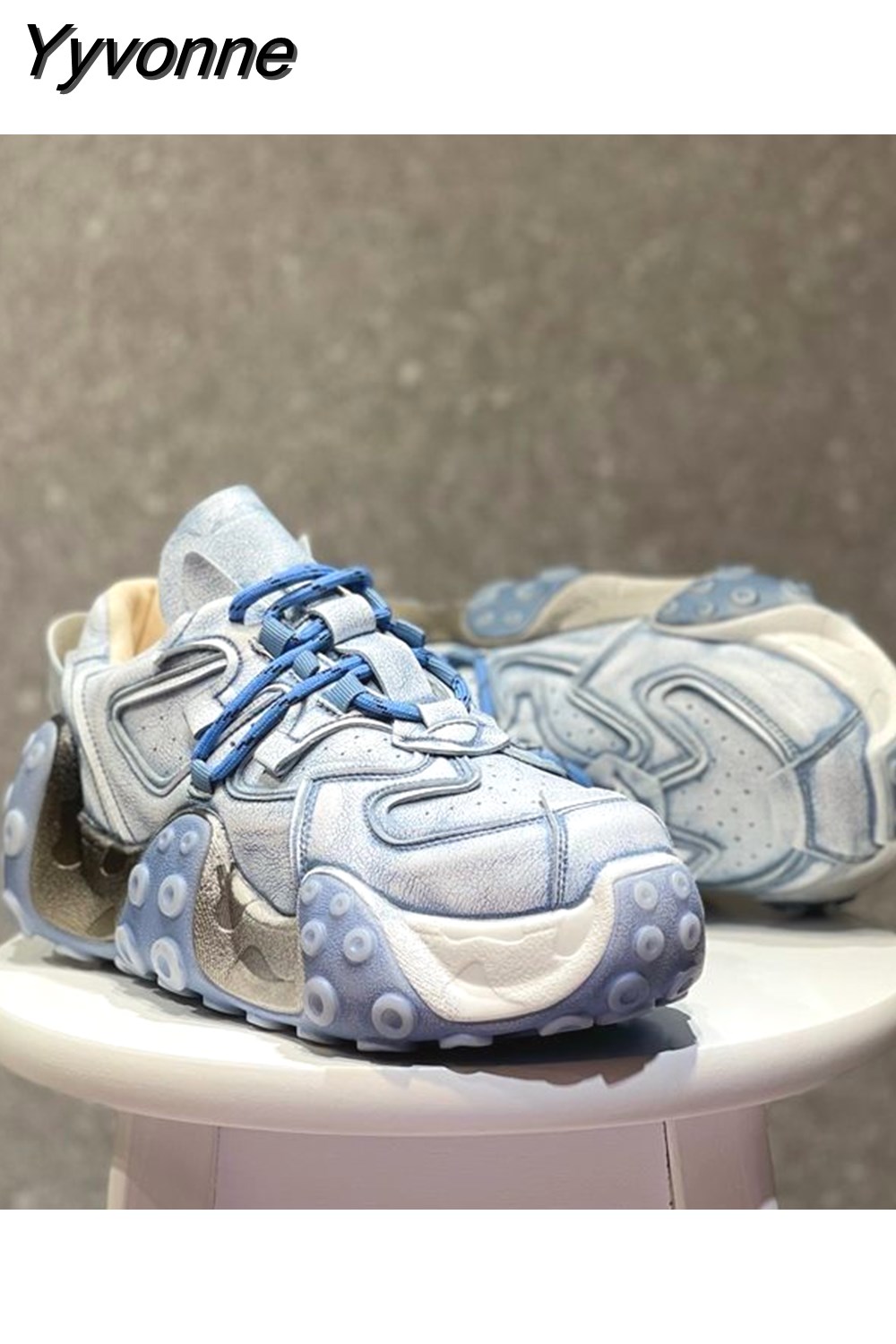Yyvonne 2023 Fall Retro Rub Colored Authentic Leather Clunky Sneakers Female Niche Distressed Octopus Sports Leisure Dirty Shoes 601-0