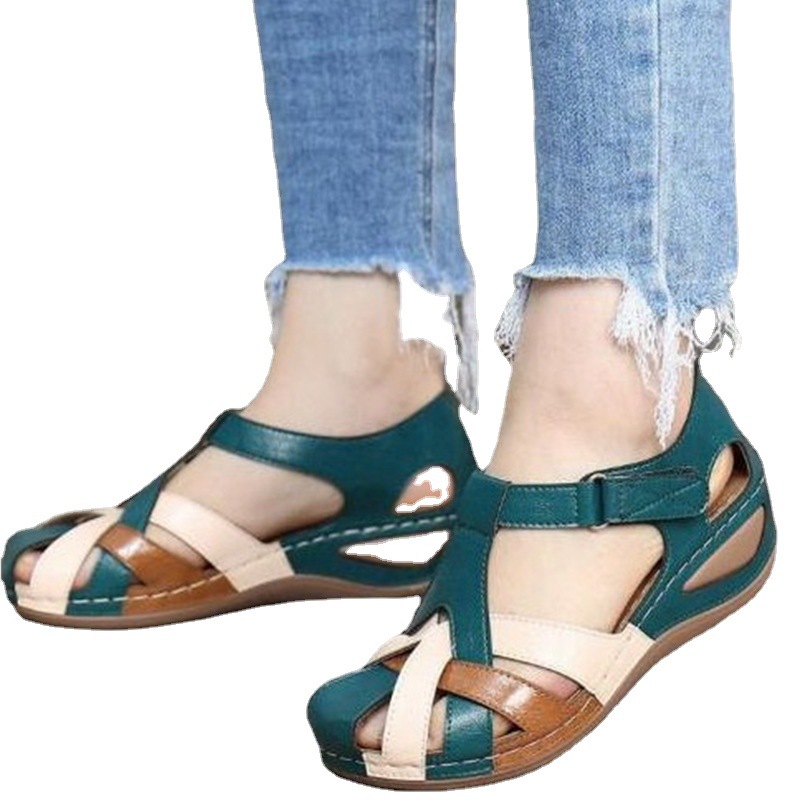 Yyvonne 2025 Women's Sandals Line Light Soft Base Large Cross-Holding Round Head And Sandals Woman