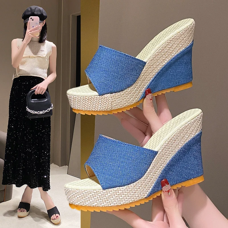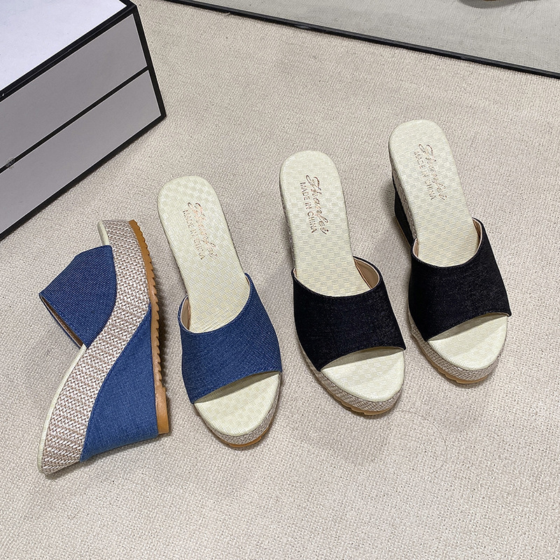 Yyvonne And Fish Mouth Large-Size Slippers Large-Size Summer New Thick Bottom Height Cloth Cold Slippers Woman