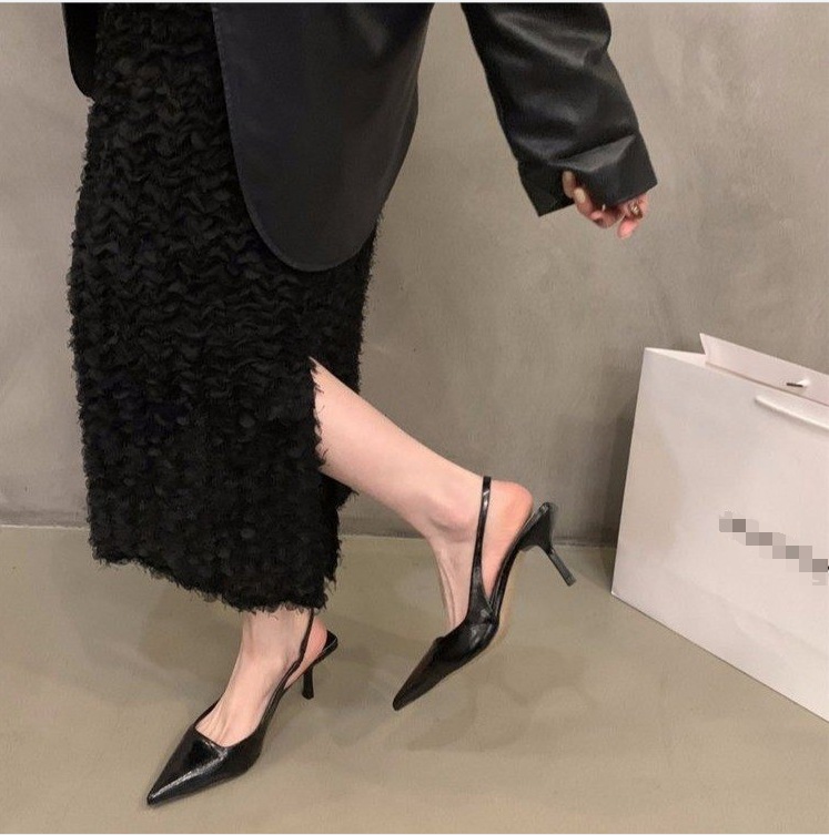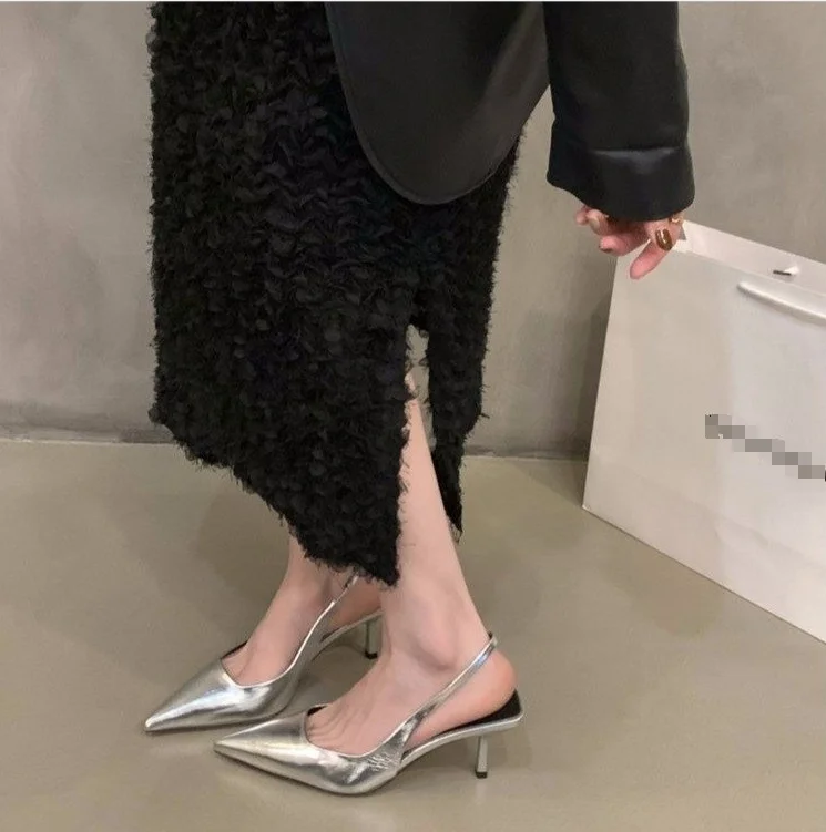 Yyvonne And Summer 2025 New Temperament Heel Shoes High Heel Silver Bao Head Behind The Fine And Solid-Colored Sandals Woman
