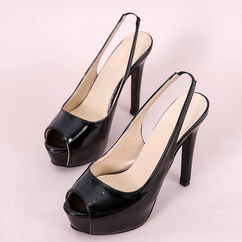 Yyvonne And Summer New Fine Heel 12.5Cm Sandals Paint Leather Bright Noodles Nightclub Large-Size Fish Mouth Fashion Sandals Women