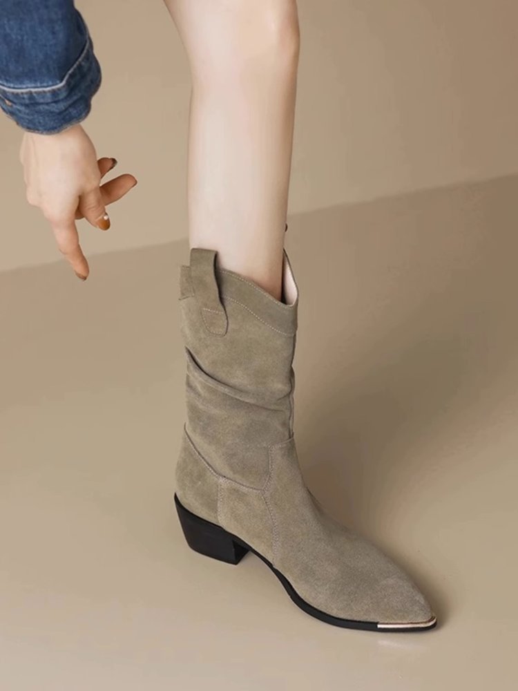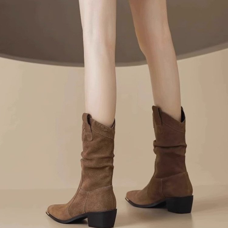 Yyvonne Boots Frosted Folding Pile Boots Women Spring And Autumn New Fashion Sexy Coarse And Pointed West Boots Boots