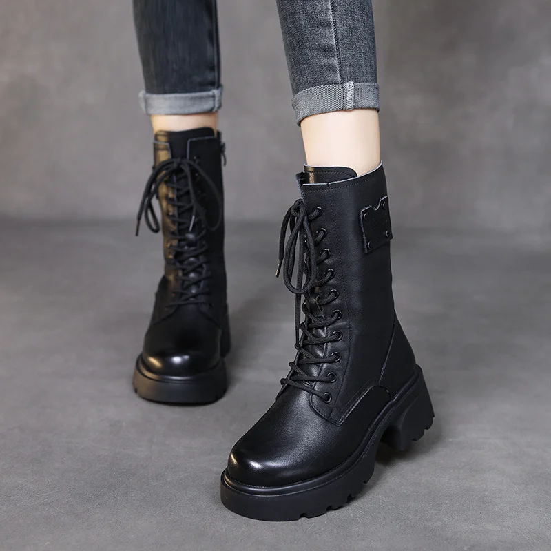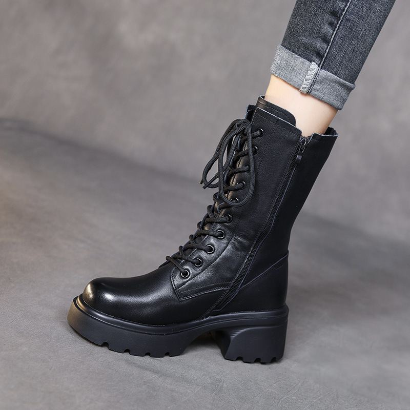 Yyvonne Boots Thick Background Retro Martin Boots Women Leather Autumn And Winter New Velvet And Coarse And Locomotive Boots
