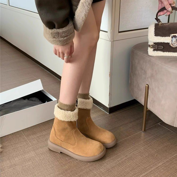 Yyvonne Boots Women Winter New Sen Series Retro Plus Velvet Cotton Shoes Flat Hair Short Boots Woman