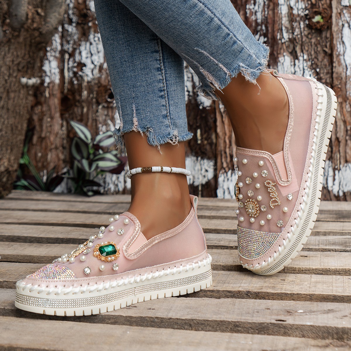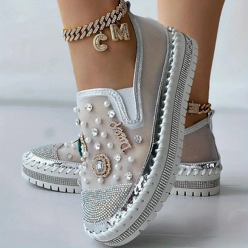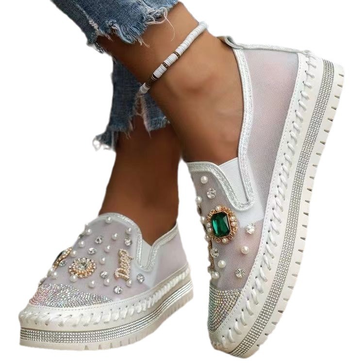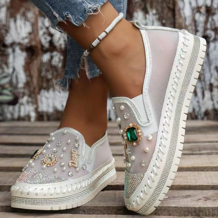 Yyvonne Cake Thick-Soled Lefu Shoes Spring Summer New Mesh Women's Shoes Breathable Mesh Water Drilled A Foot Lazy Single Shoes