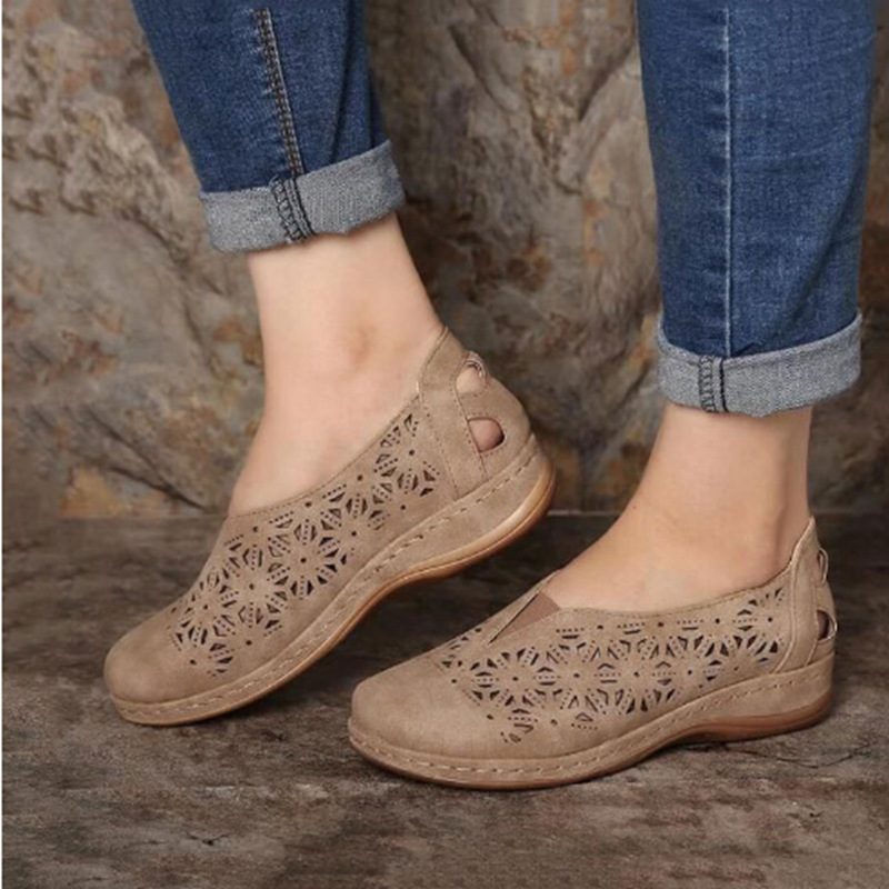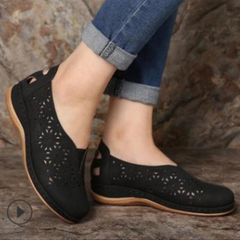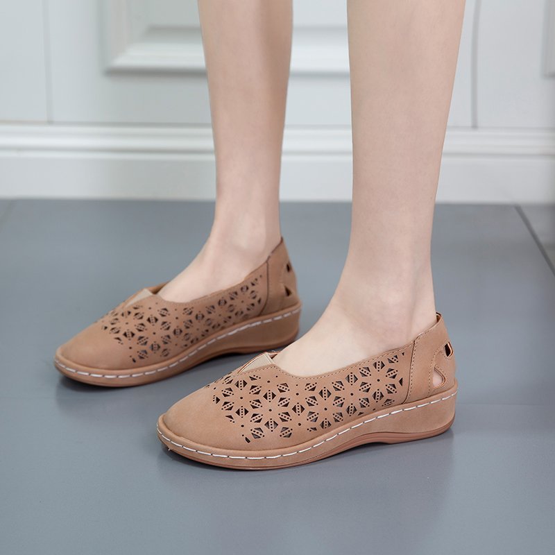 Yyvonne Casual Flat-Bottomed Hollow Hole Shoes Women Retro Round Head Pedal Lefu Shoes Lazy Single Shoes