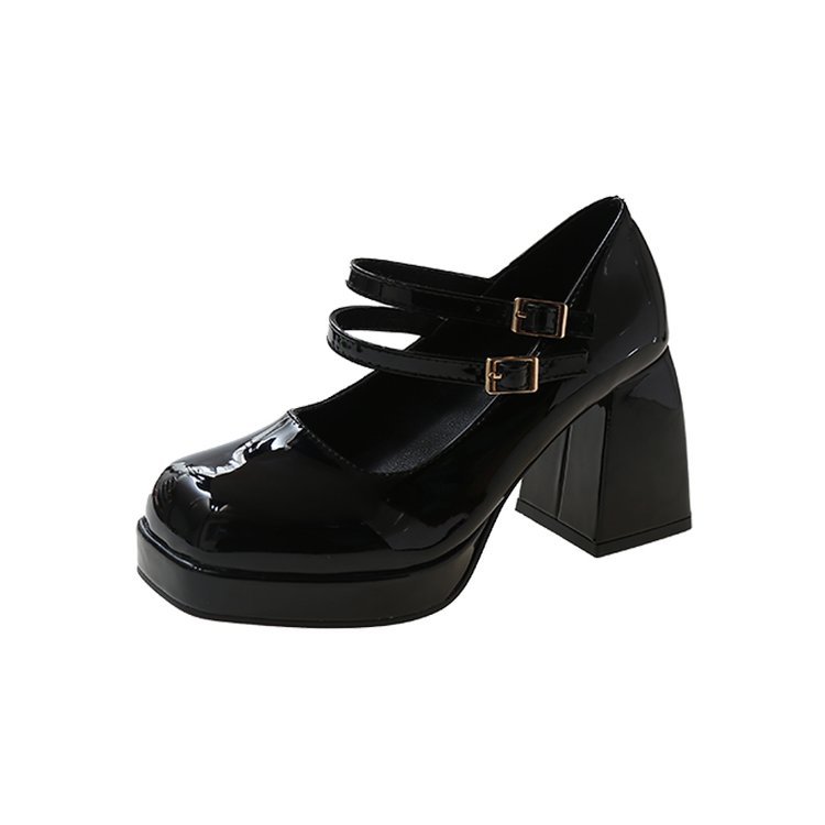 Yyvonne Coarse Square Head Small Leather Shoes Women 44 Large Spring And Autumn New Mary Jane French High Heel Single Shoes