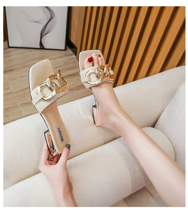 Yyvonne Cool Slippers Women's Retro Chain Flat Shoes Niche Cool Drag Spring And Summer New Wear Slippers Women's Shoes