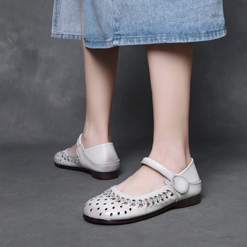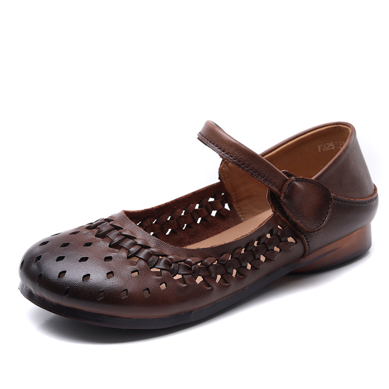 Yyvonne Cow Skin Retro Hollow Sandals Women 2025 Summer New Comfortable Breathable Hole Shoes Casual Mother Shoes