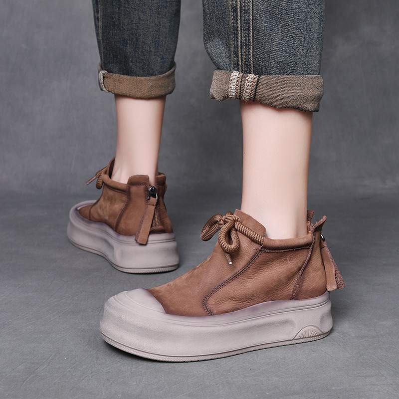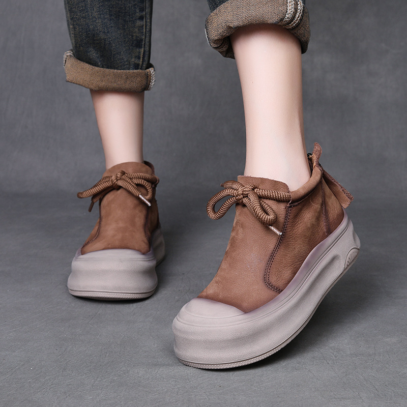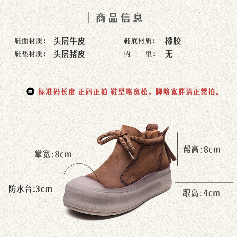 Yyvonne Cow Skin Retro Martin Boots Autumn And Winter New Round Head Tie And Ankle Boots Leather Leisure Short Boots Woman