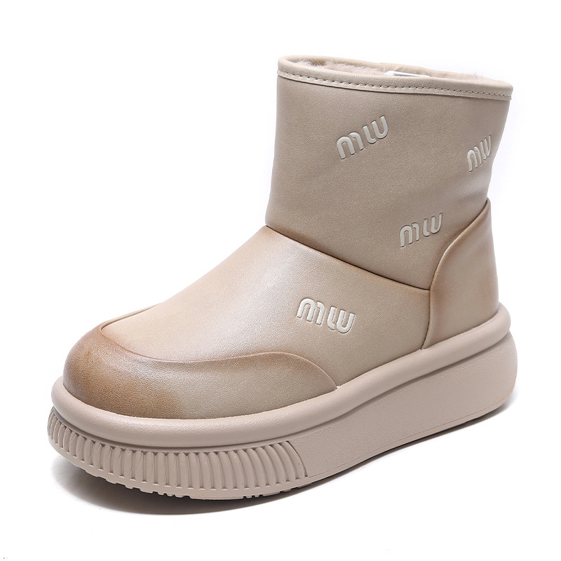 Yyvonne Cow Skin Thick Bottom Plus Velvet Warm Lamb Velvet Snow Boots Women's Shoes Winter New Retro Boots Age-Old Cotton Shoes