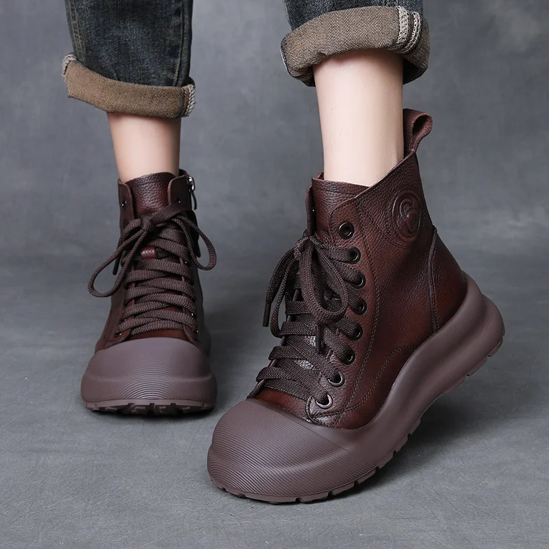 Yyvonne Cowhedular Retro Martin Boots Women Autumn And Winter New Set Leisure Short Boots With Round Head High Help Shoes