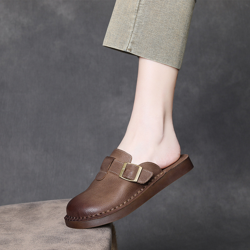 Yyvonne Cowhick Retro Birken Shoes Half-Slippers Women Thick Summer New Lazy Outside Wearing Bag Head Slippers