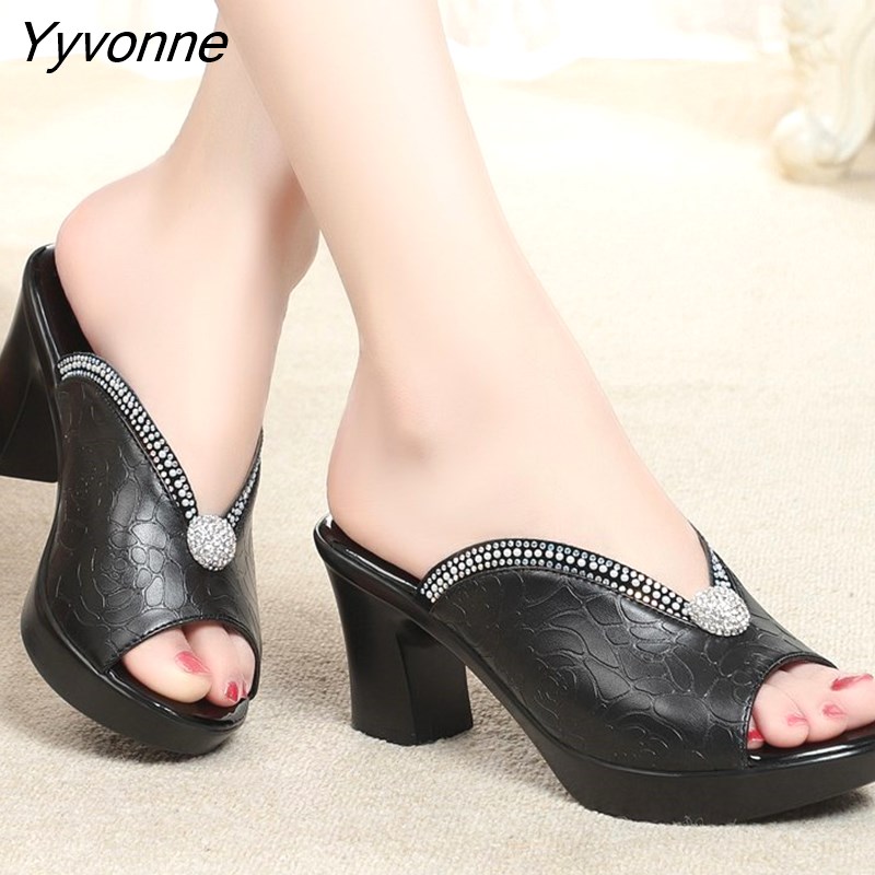 Yyvonne Crystal Platform Sandals Women 2022 Peep Toe Casual Slippers Woman Summer Shoes on Heels Outdoor Black High Heel Slides