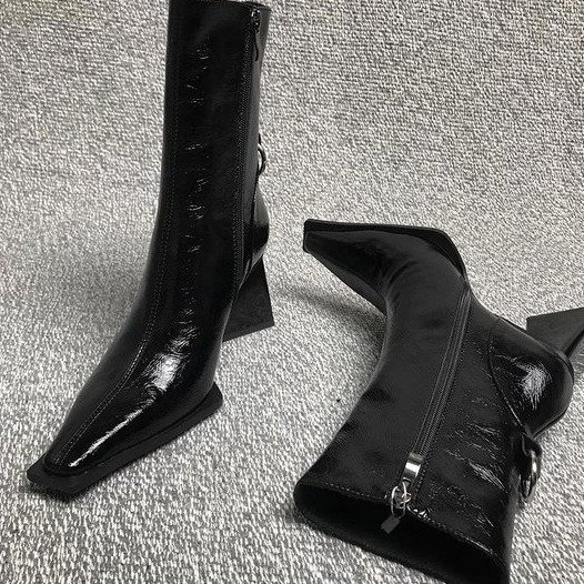 Yyvonne Design 2025 Autumn And Winter New Small Square Head Thick Heel High Heel Boots Martin Boots High Heels High Heels Fashion Boots