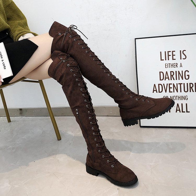 Yyvonne Explosive Large Code 35-43 Yards Flat Over The Knee Women's Long Boots Autumn And Winter New Velvet Locomotive Boots