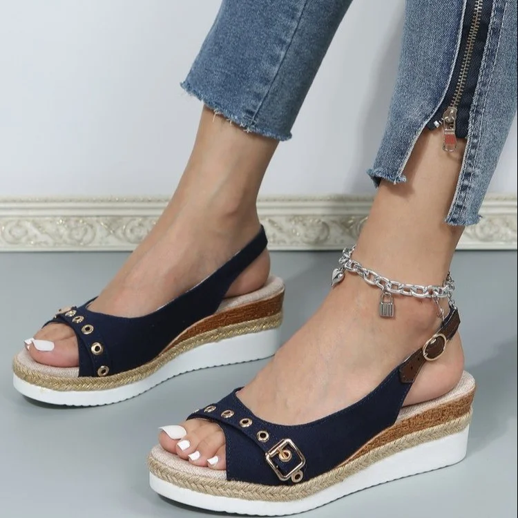 Yyvonne Fashion Fish Mouth Women Sandals Large-Size Buckle Pine Cake Thick-Soled Beach Sandals Women