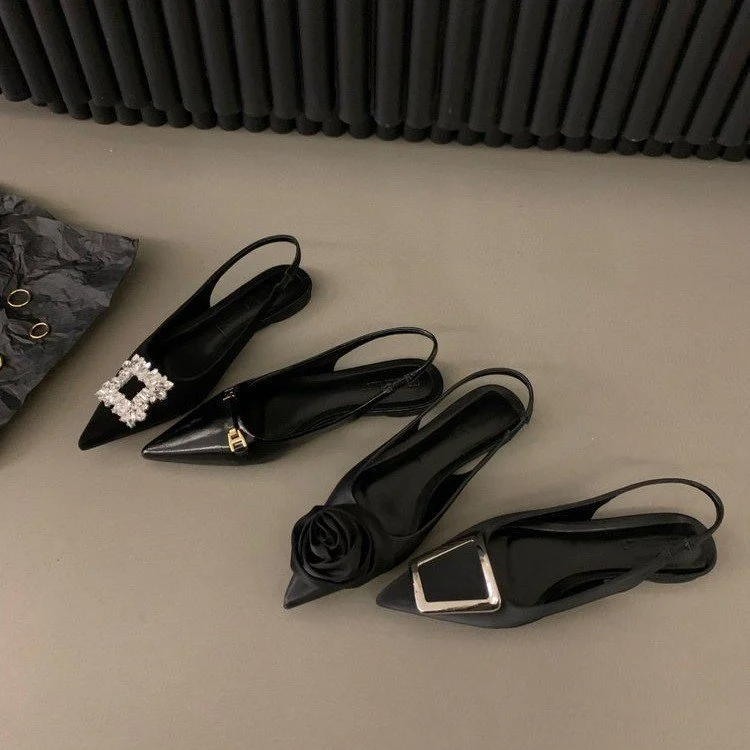 Yyvonne Flat-Bottomed Black-Headed Sandals Fairy Shoes 2025 New Spring And Summer Pointed Drill Temperament Single Shoes