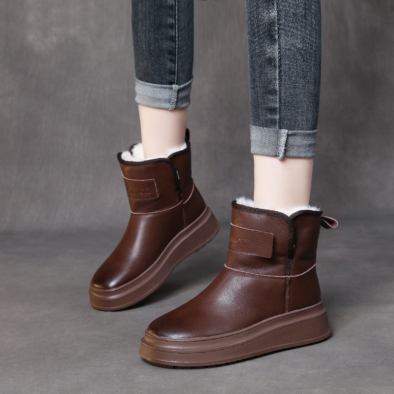 Yyvonne Fur Integrated Layer Of Cowhair Cotton Shoes Snow Boots Winter Warm Leather Boots Thick Bottom Increase
