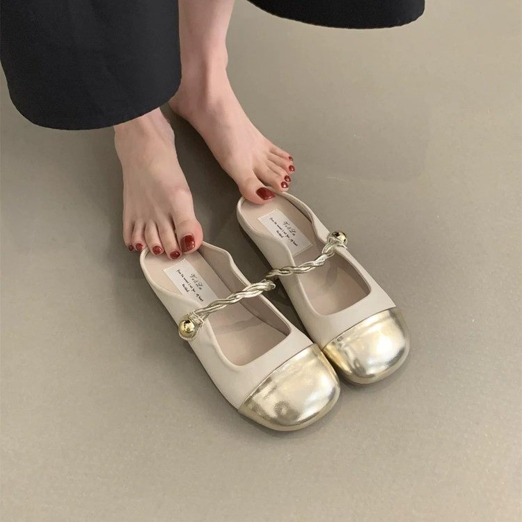 Yyvonne Half Slippers Women Summer Wear Gentle Fairy Style Temperament Soft Flat Bottom One Foot Pedal Late French Cool Drag