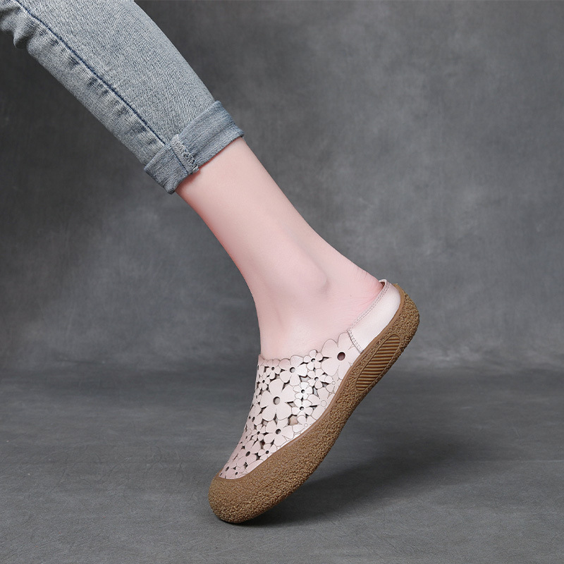 Yyvonne Half Slippers Women's Summer New National Style Wear Retro Soft Sole Shoes Flat Sandals Hollow Women's Shoes