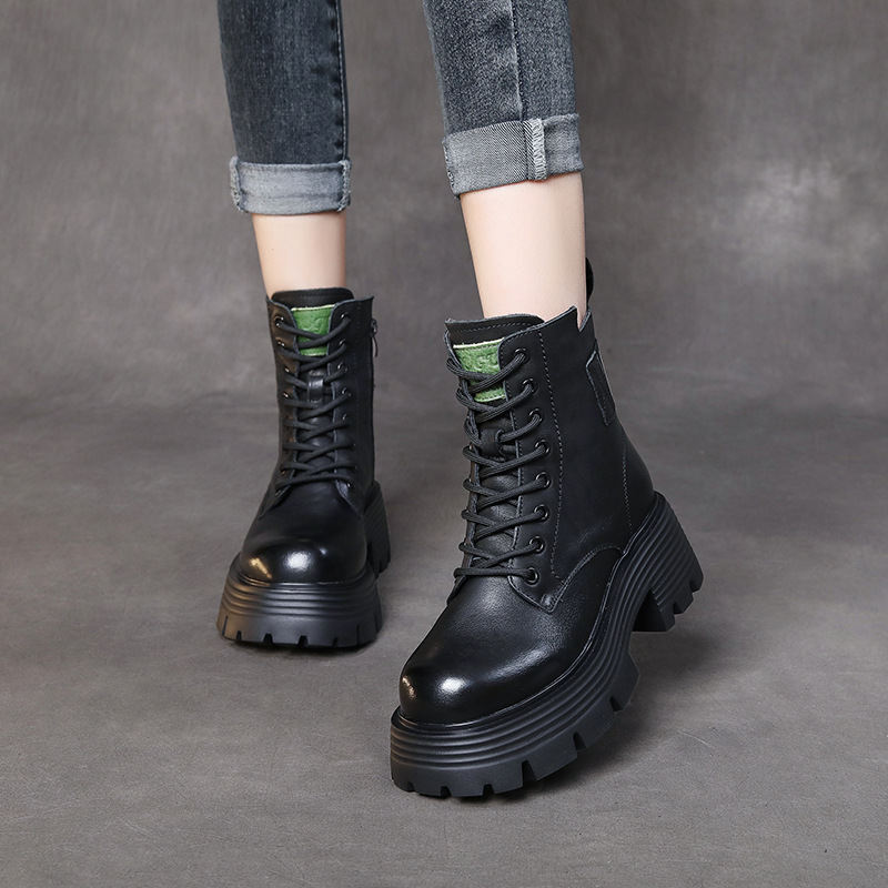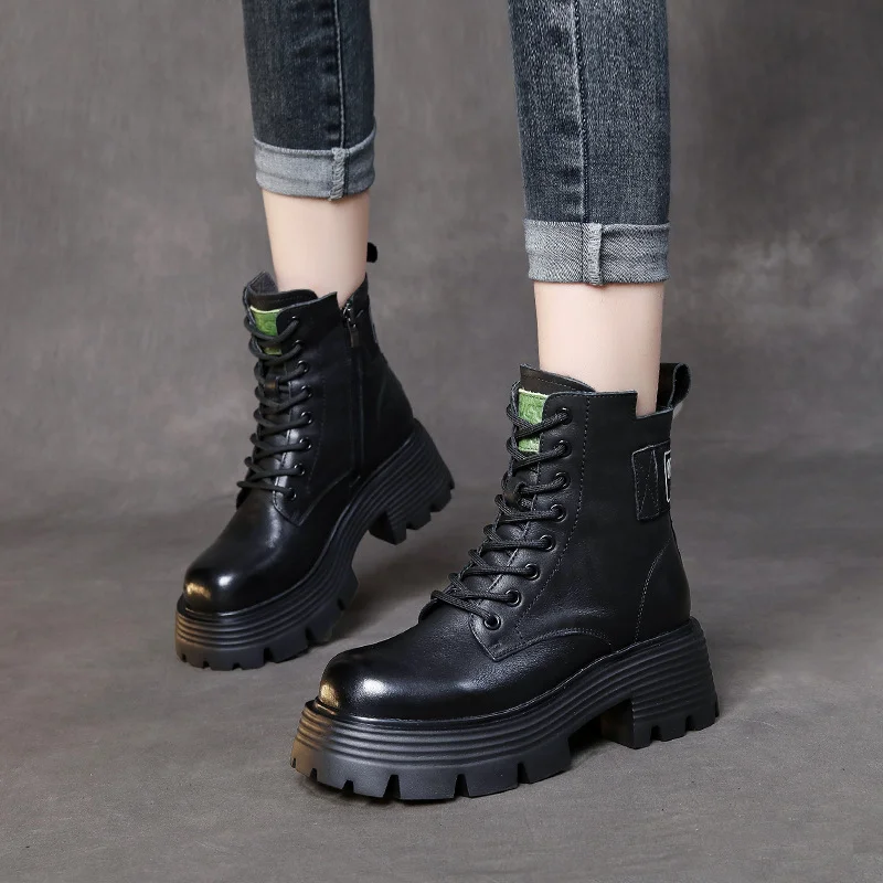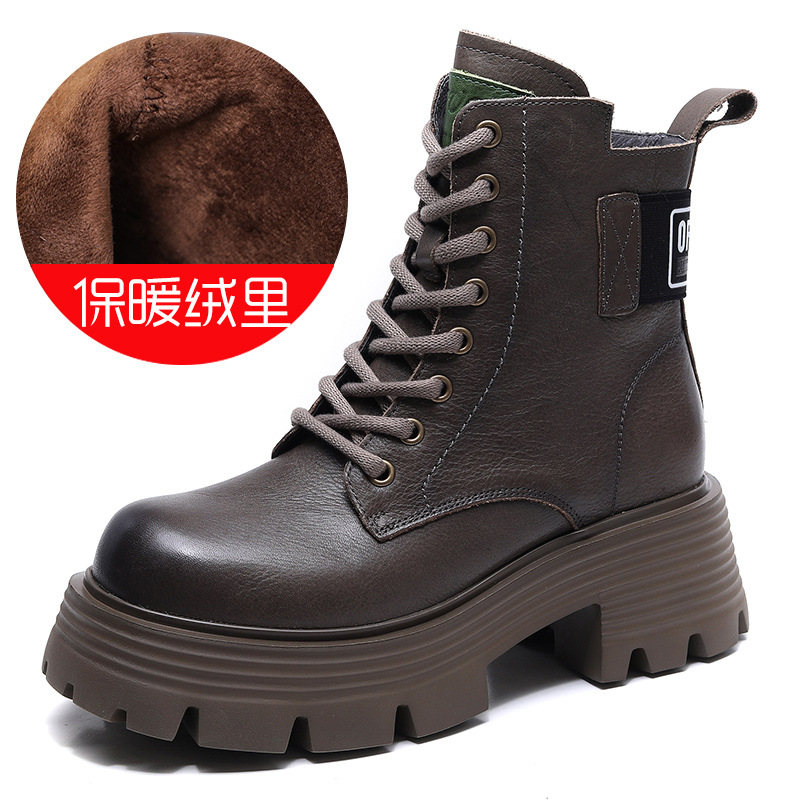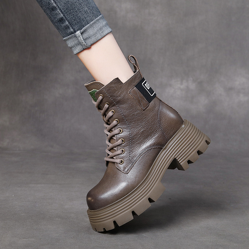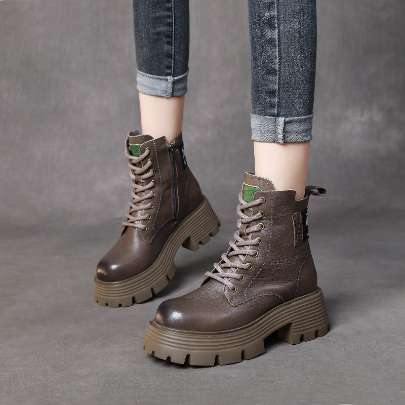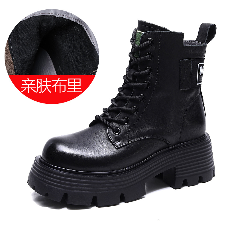 Yyvonne Head Layer Of Cow Skin Thick And Thick Bottomed Pine Cake Boots Handsome British Style Retro Martin Boots Women Height Height