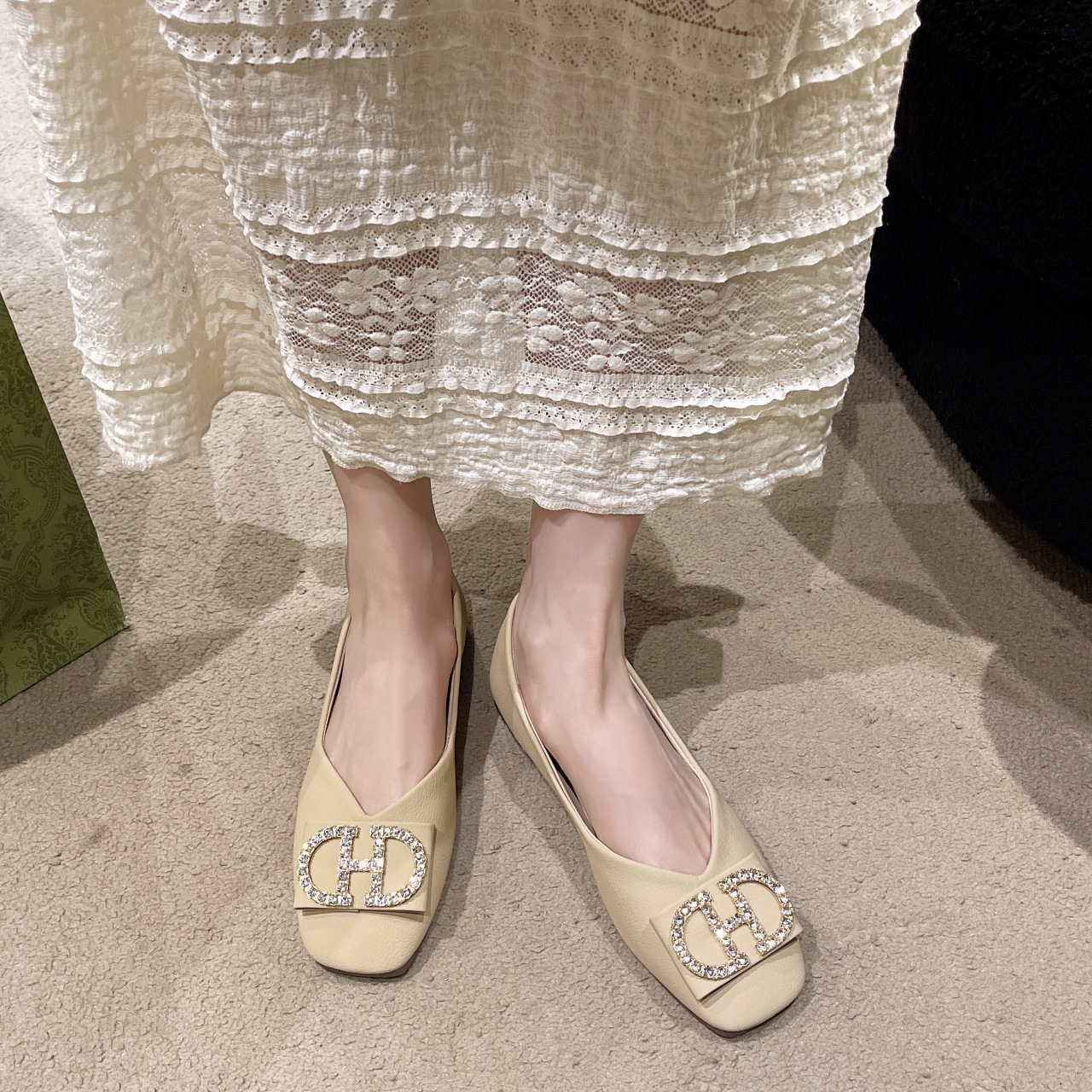 Yyvonne Head Shallow Single Shoes Women's Fashion New Korean Version Of The Female Soft-Soled Shoes Flats Leisure With Diamond Bean Women's Shoes