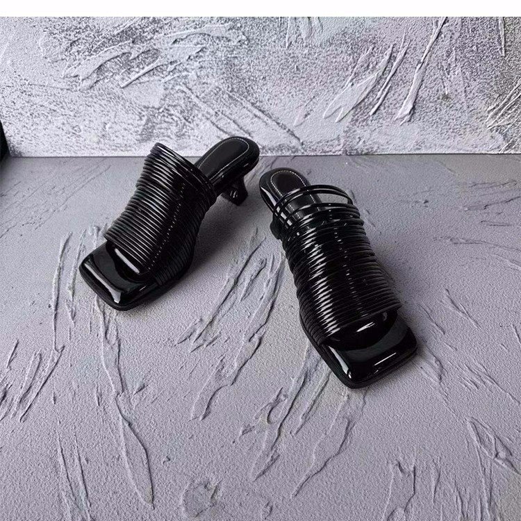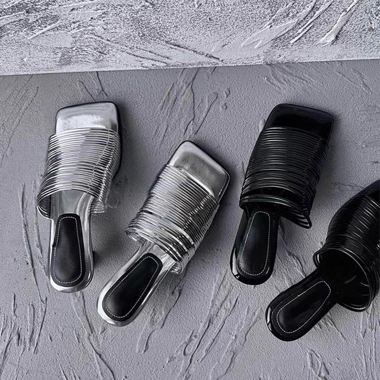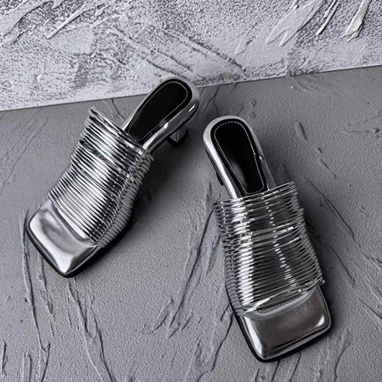 Yyvonne Head With Thin And Silver Cool Slippers Woman 2025 Summer High Heel Half-Dragging Wearing Silver Gold Simple Slippers