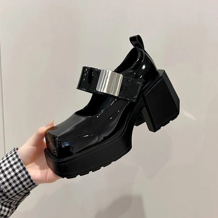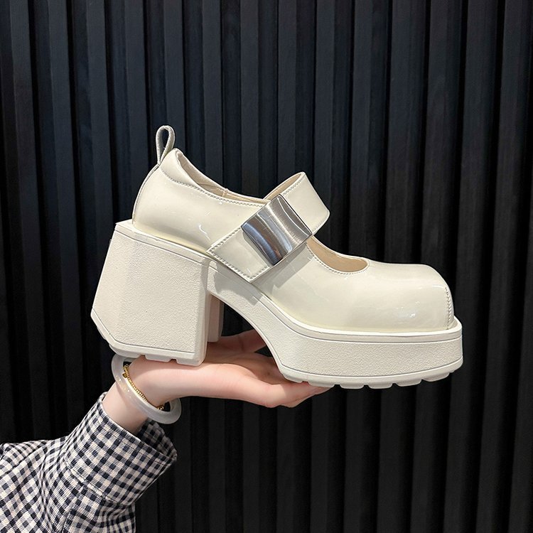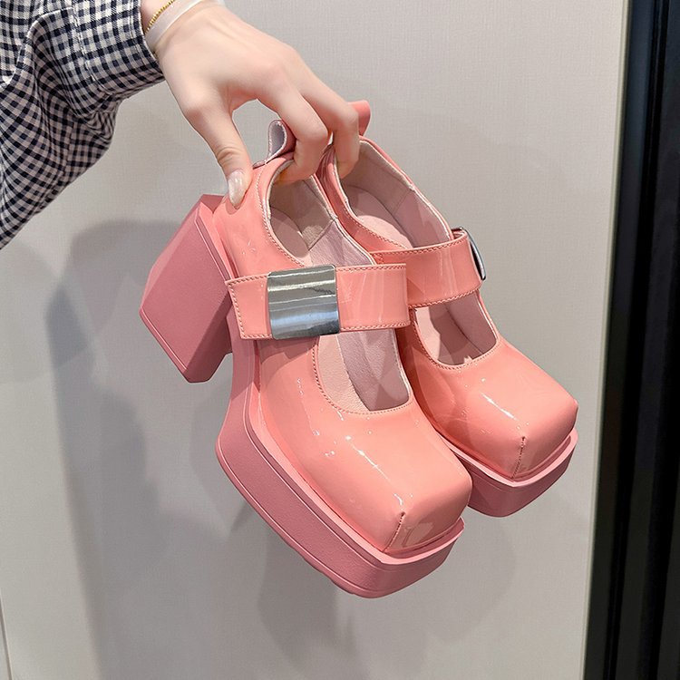 Yyvonne Heel Mary Jane Women's Shoes 2025 Spring And Summer New Square High Heel Single Shoes French Shallow Magic Sticker Small Leather Shoes