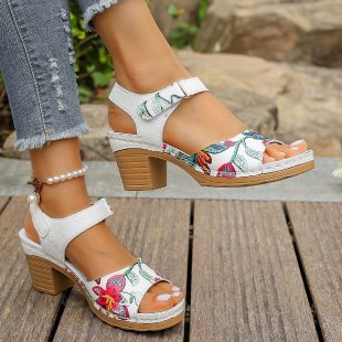 Yyvonne High-Heeled Sandals 2025 Summer New Magic Sticker Casual Retro Coarse Sheel Women's Sandals