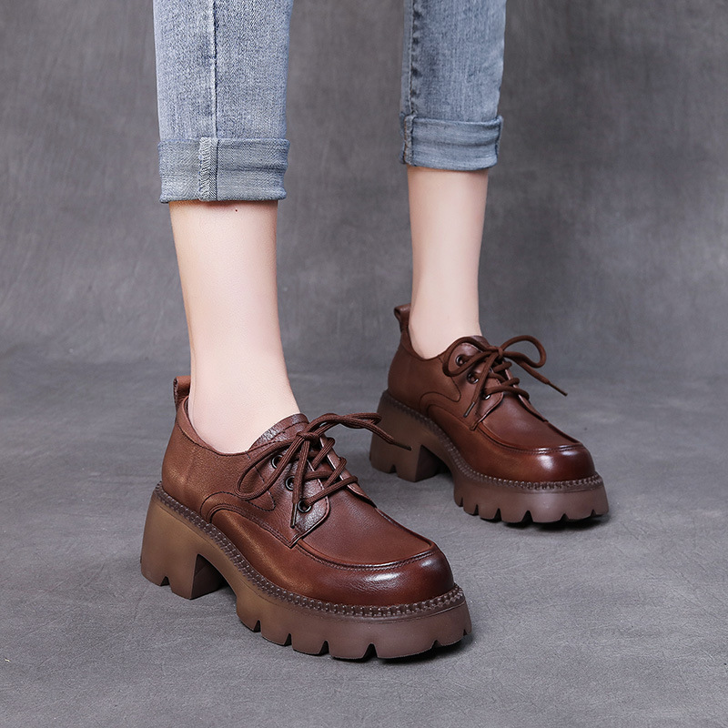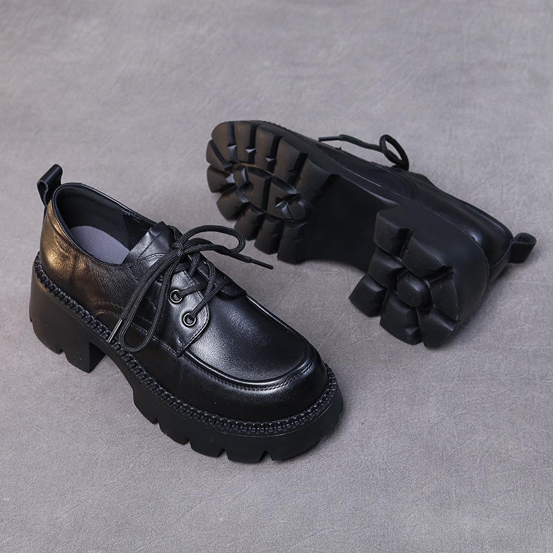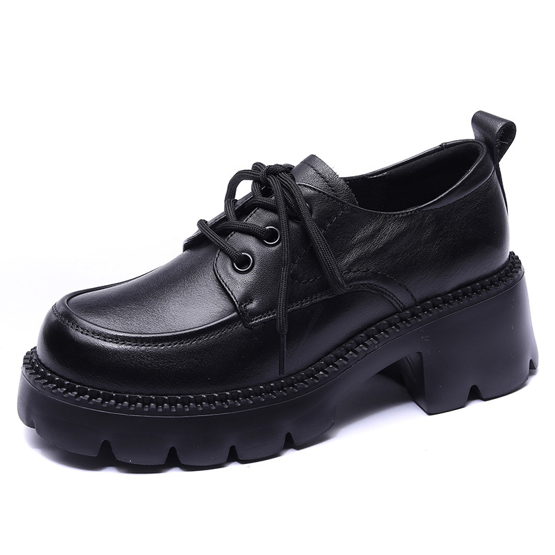 Yyvonne High-Rise Cowhedole With Coarse Heel Of Lefy Shoes Women Thick Bottom Four Seasons Ultra-Light Leather Single Shoes 2 Casual