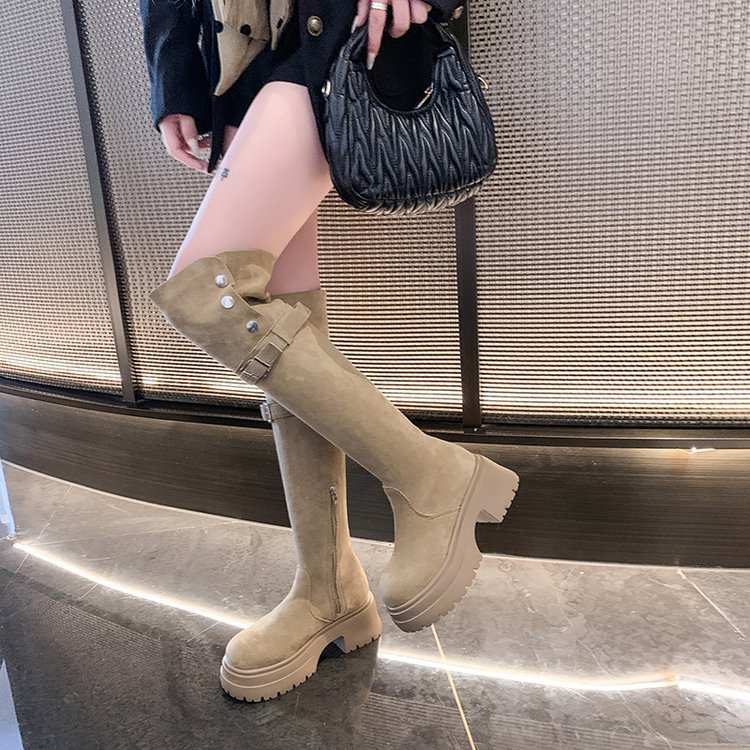 Yyvonne High-Tall Knight Boots Women Autumn And Winter New With Velvet High And Over-Knee Boots Two-Ded-Long-Headed Boots Women