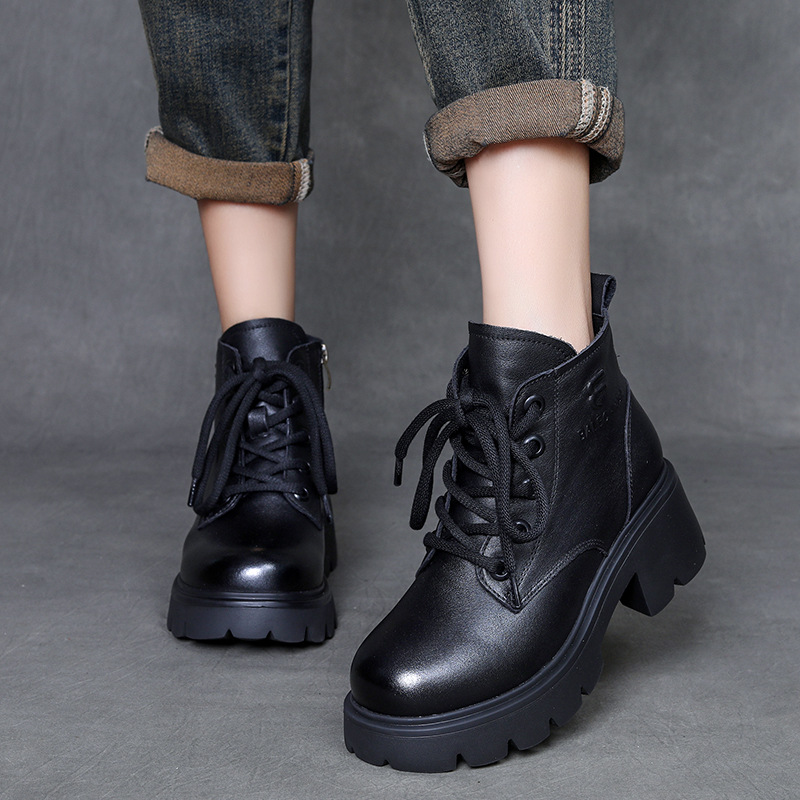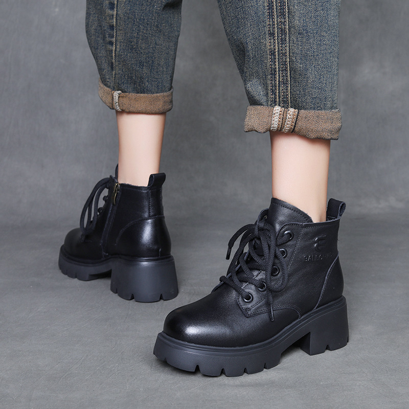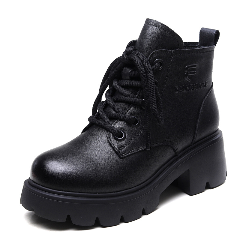 Yyvonne Kraft English Wind Martin Boots Women Winter New Small High-Hee Height Height Leather Boots Plus Velvet Short Boots