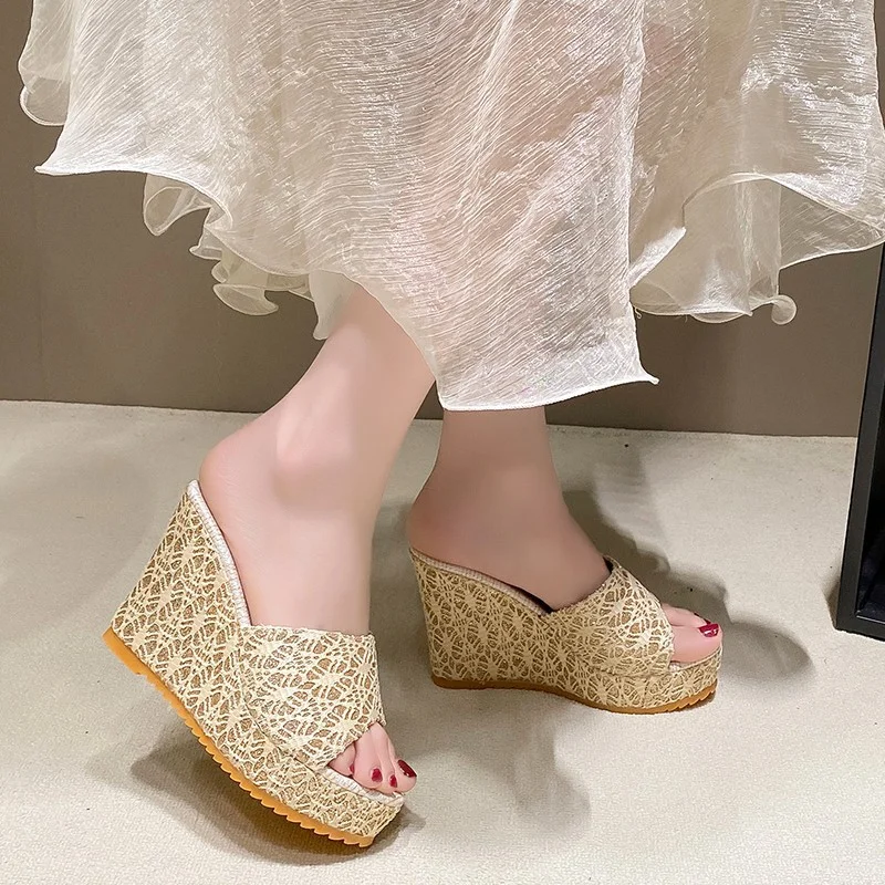 Yyvonne Large-Size Cool Slippers Women Summer New Slope With Fish Mouth Thick Words High And Cold Drag Woman Drag