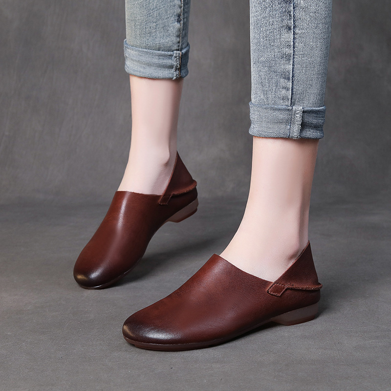 Yyvonne Layer Kraft Flat And Soft-Soled Single Shoes Spring New Mori Art Retro Leather Hand-Sleeveed Women's Shoes Monk
