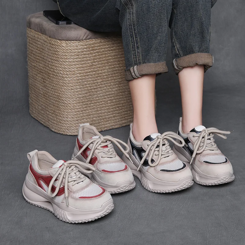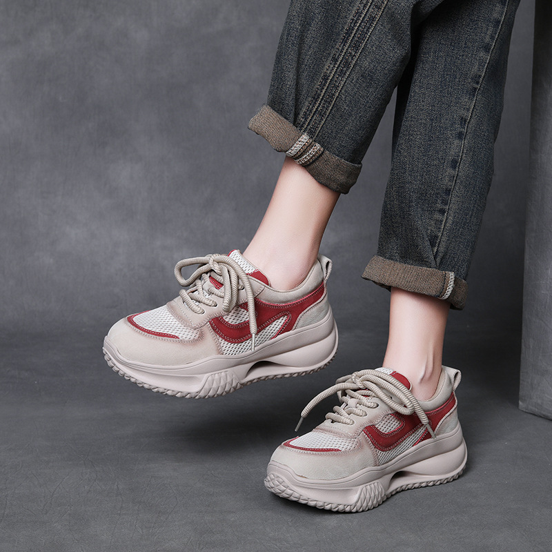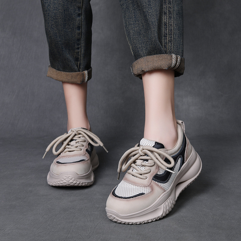 Yyvonne Layer Kraft Mesh Breathable Thick Base Old Dad Shoes 2025 Spring Sports Casual Shoes Women Comfortable Soft Sole Single Shoes
