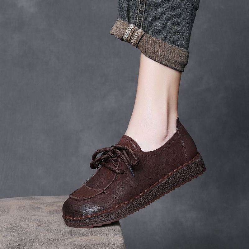 Yyvonne Layer Of Cow Leather Hand-Retro Single Shoe Women 2025 Spring New Comfortable Soft-Soled Casual Shoes Round Leather Women's Shoes