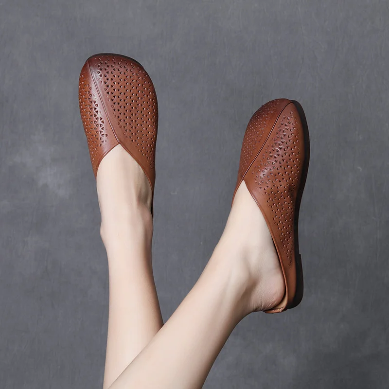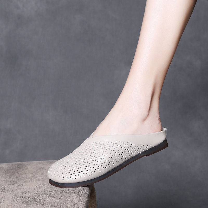 Yyvonne Layer Of Cow Skin Retro One Foot Soft-Soled Slippers Women 2025 Summer New Comfortable Outer Hollow Hole Shoes
