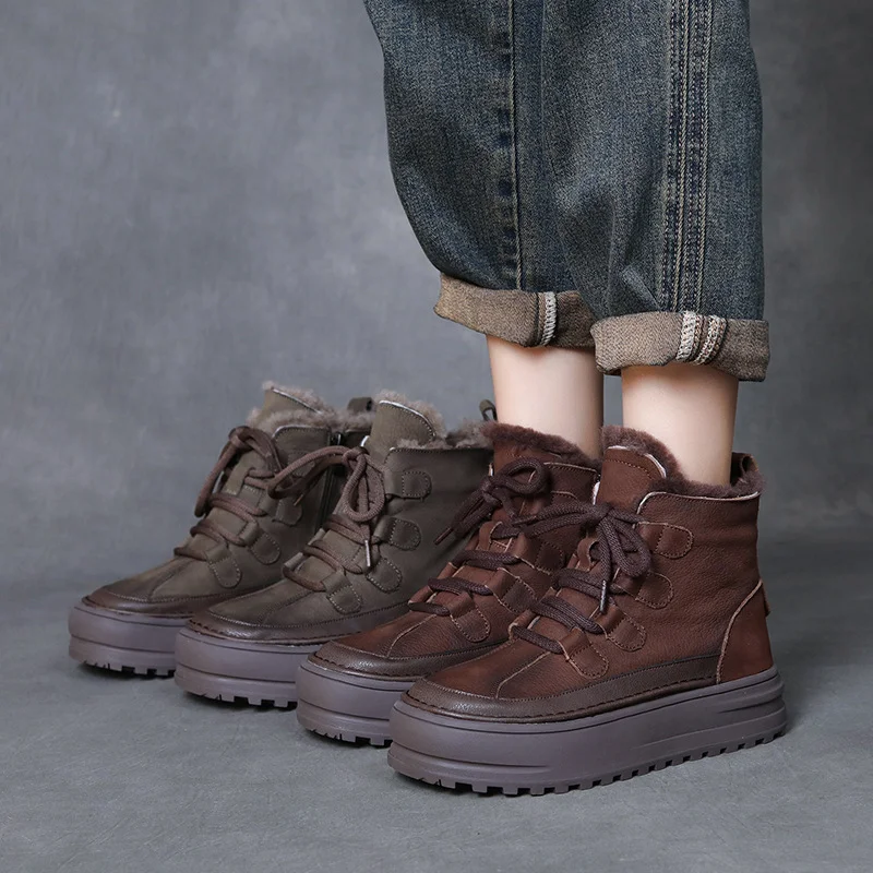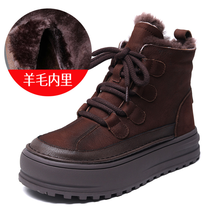 Yyvonne Layer Of Cow Skin Retro Thick-Bottomed Martin Boots Women Autumn And Winter New Leisurely Increase Short Boots To Keep Warm Wool Cotton Boots