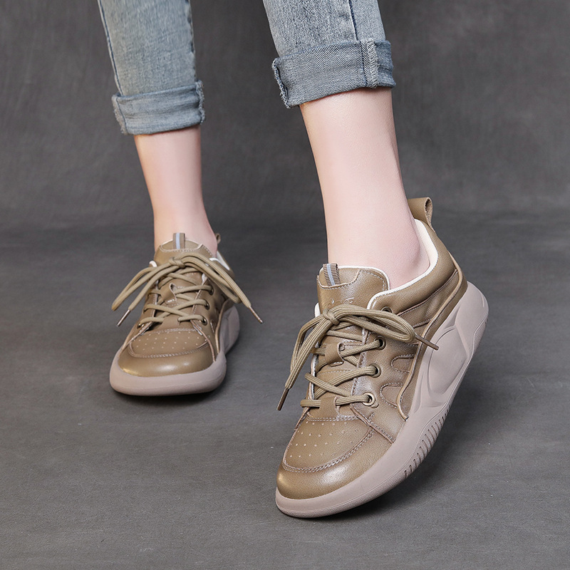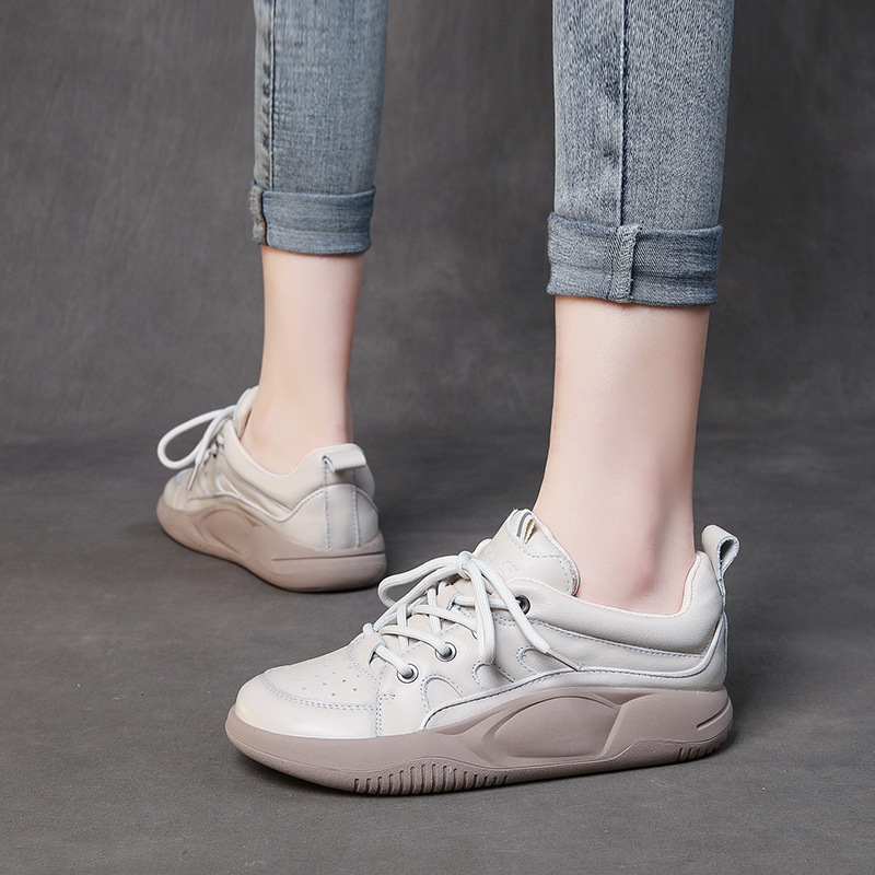Yyvonne Layer Of Cowhers Casual Lace Handmade Women's Shoes Early Spring New Leather Flat-Solt Sports Wind Soft Sole Single Shoe Doll
