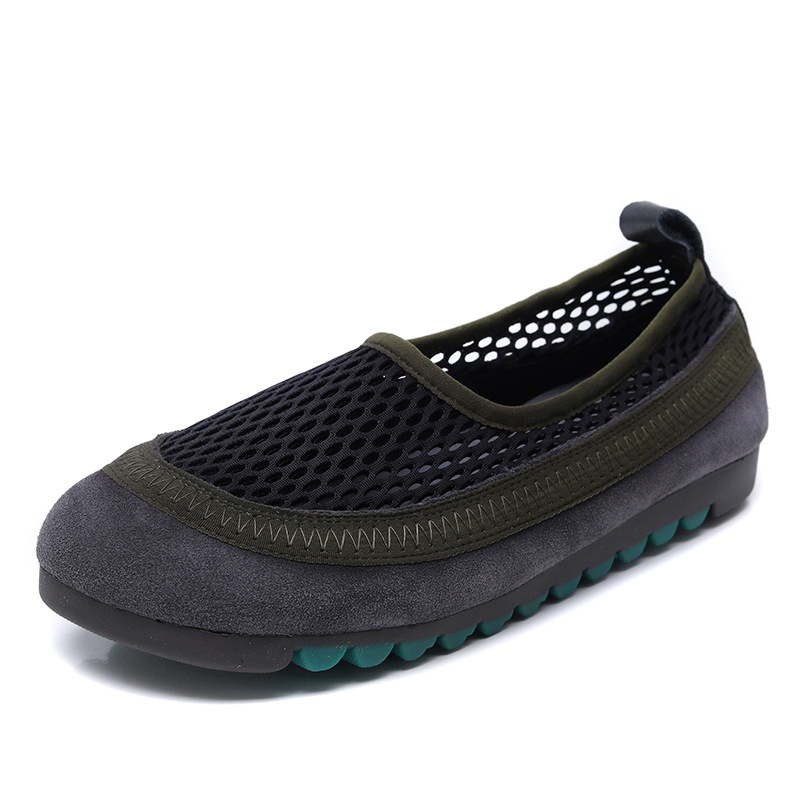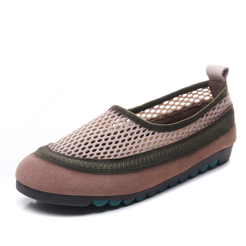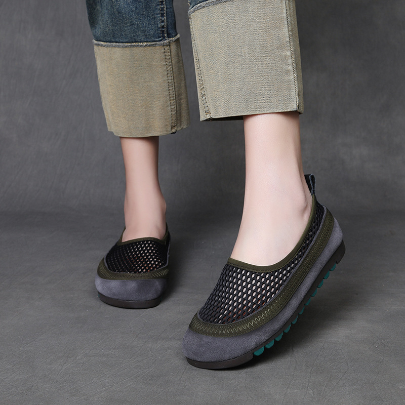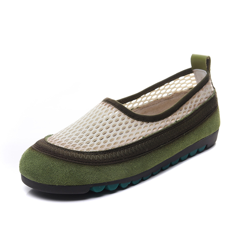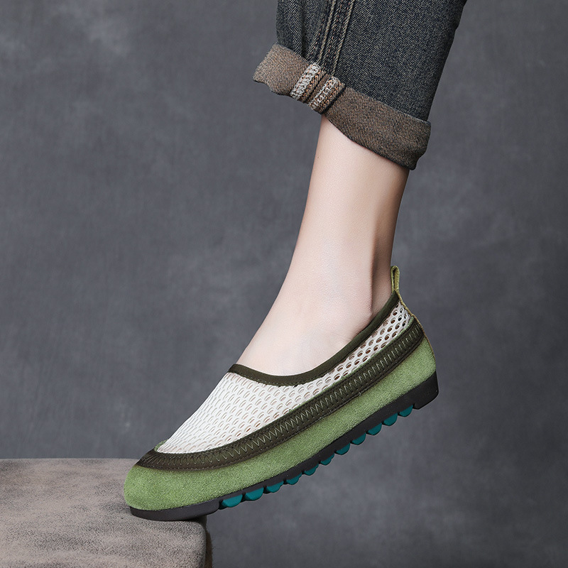 Yyvonne Layer Of Cowhers Retro Breathable Net Bean Shoes Women Spring And Summer New One Foot Pedal Comfortable Flat Sole Leisure Single Shoes