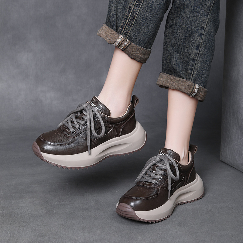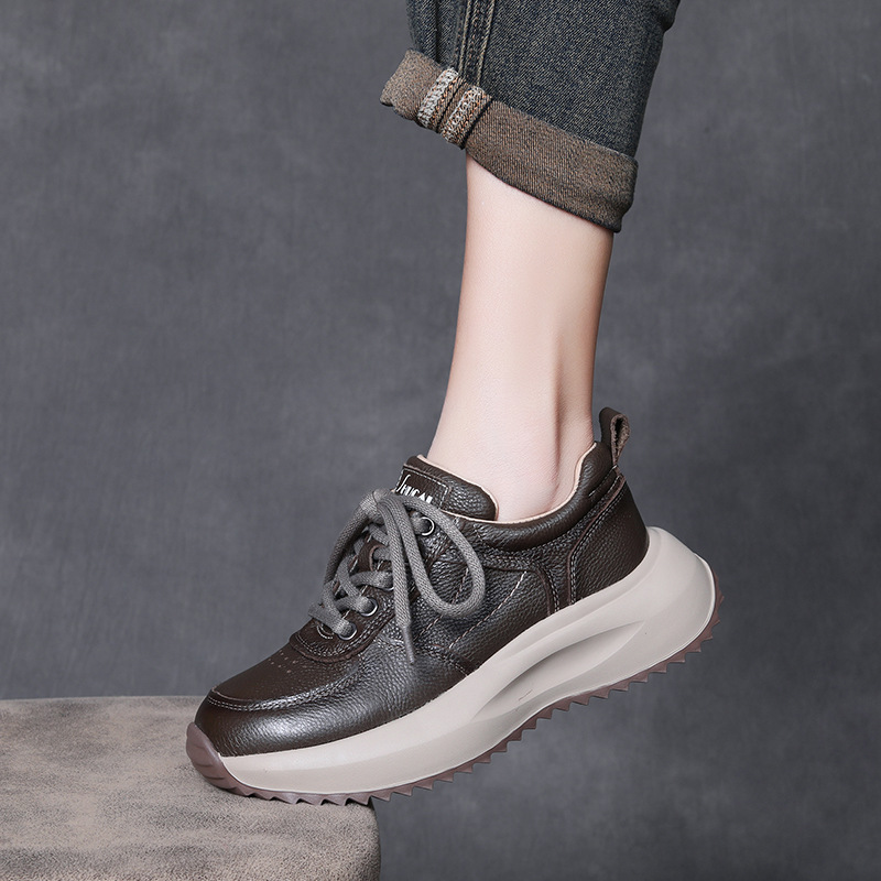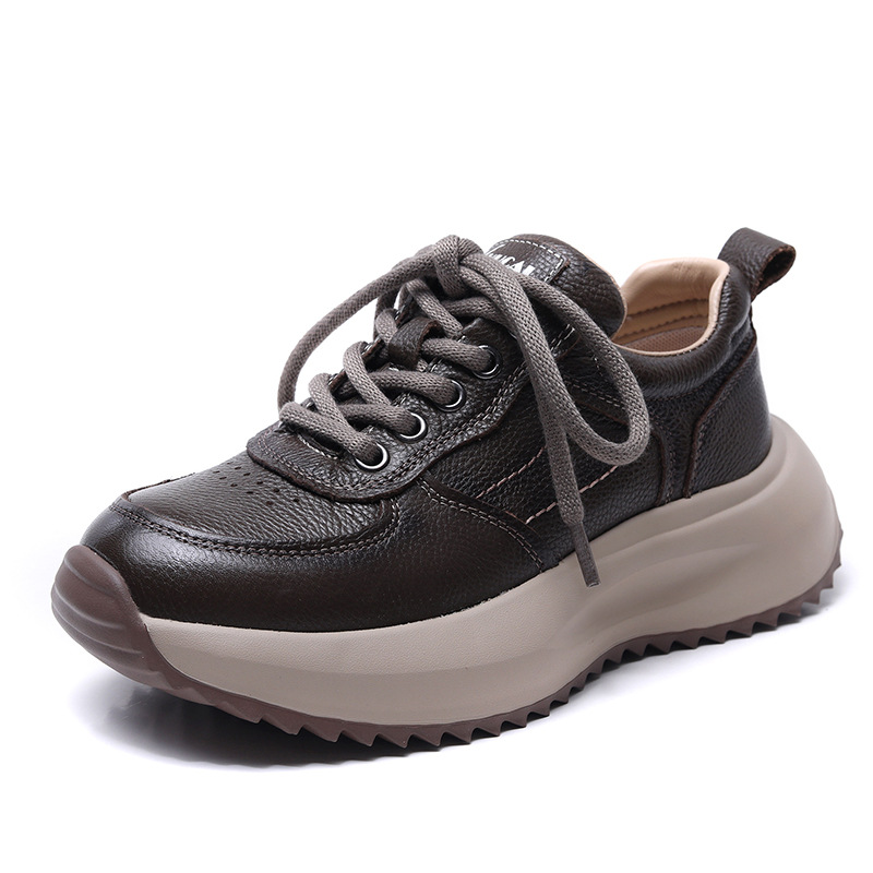 Yyvonne Layer Of Cowhick Old Dad Shoes Spring And Autumn New Comfortable Soft Sole Casual Shoes Round Head Single Shoes