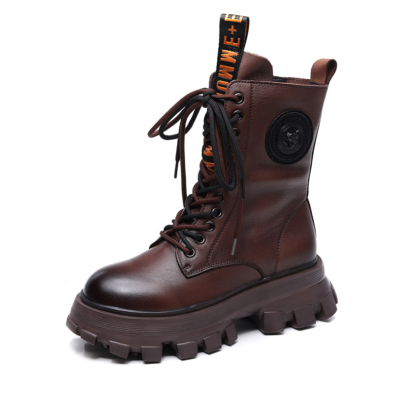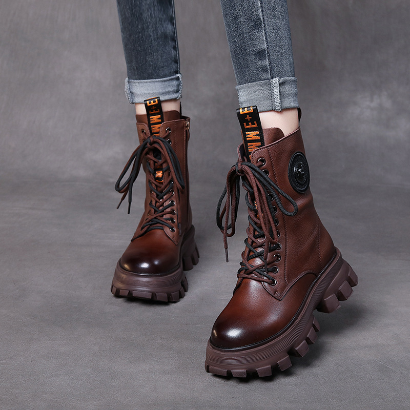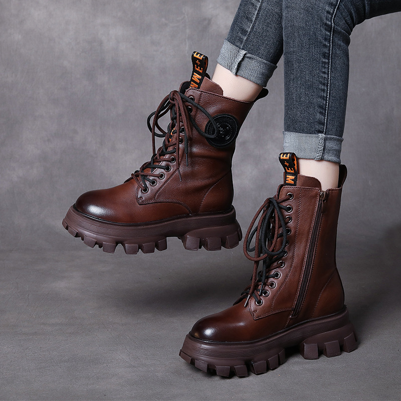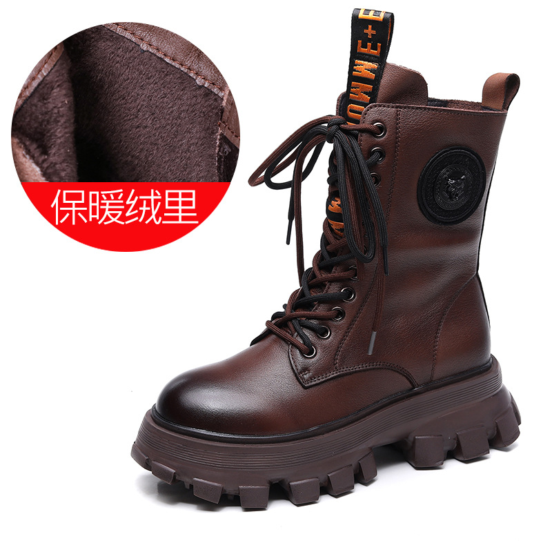 Yyvonne Layer Of Cowhide Martin Boots Autumn And Winter Plus Velvet Warm New Pine Cake Bottom Zipper Locomotive Boots
