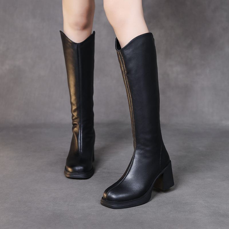 Yyvonne Layer Of Gruffel Coarse And Long Boots In The Warm High-Heekin Women Autumn And Winter New Personality Leather Fashion Boots