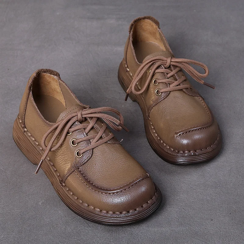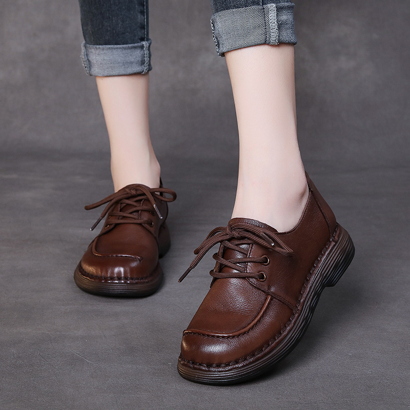 Yyvonne Layer Of Kraft Hand Hand-Skinned Soft Soles Casual Leather Shoes Women's Autumn New Comfortable With Kraft Single Shoes Retro Women's Shoes