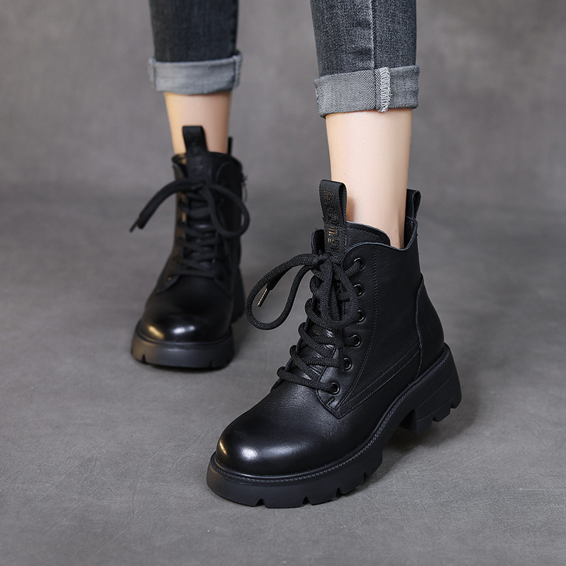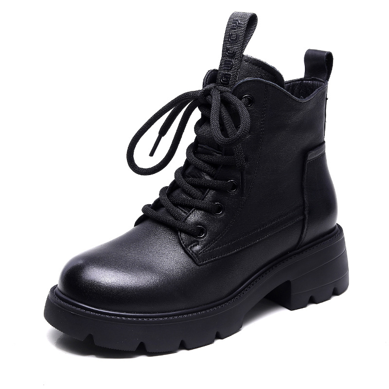 Yyvonne Layer Of Kraft Rubber Foam Bottom Single And Velvet Inner Leather Martin Boots Woman With Height 4.5 Cm