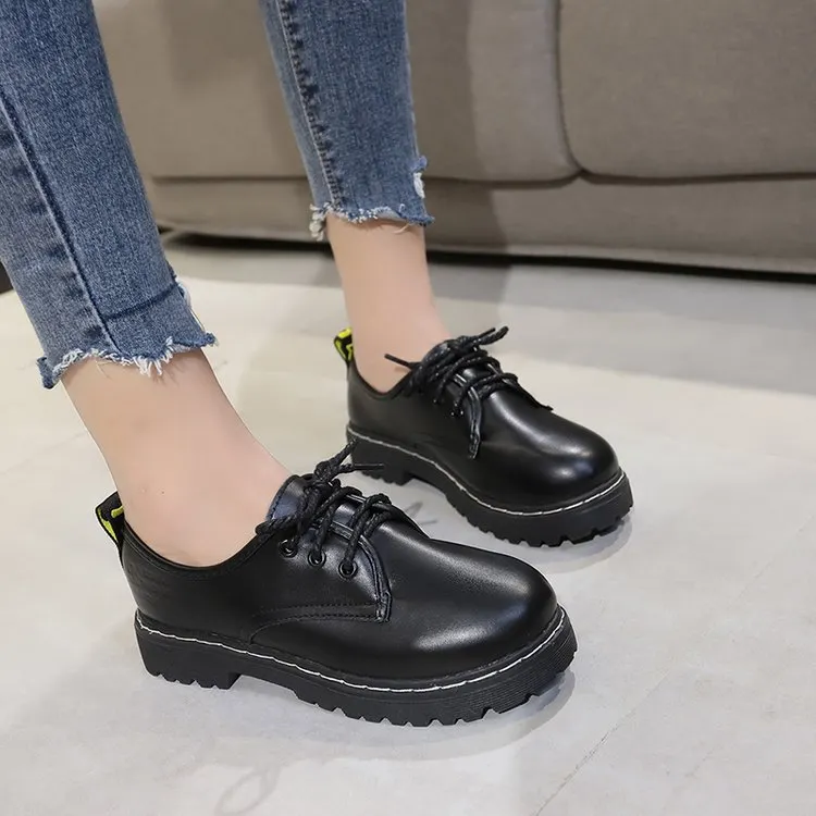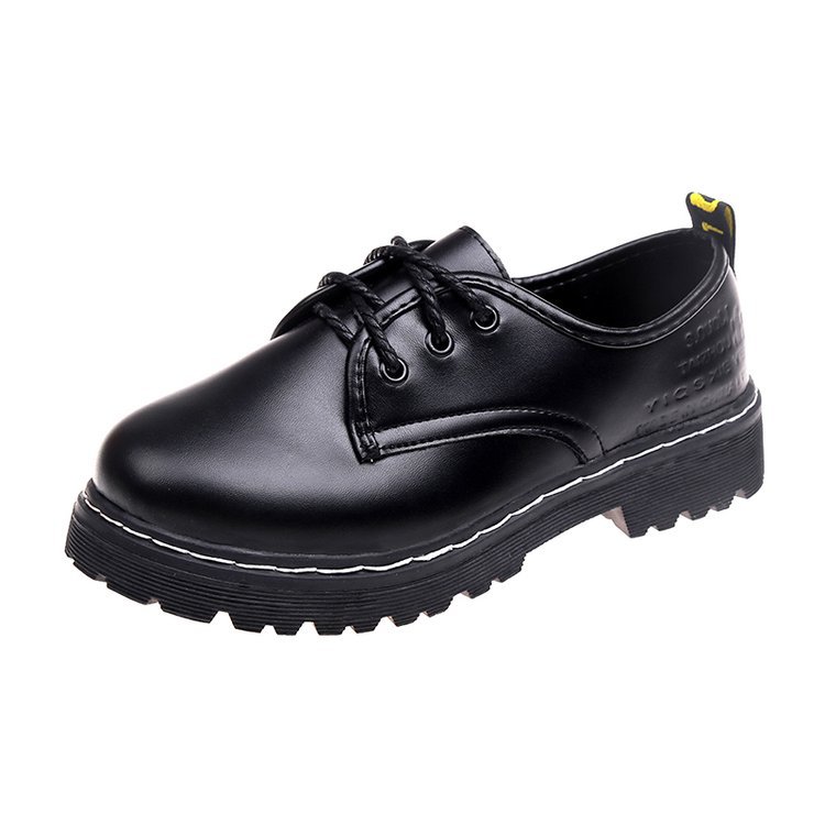 Yyvonne Leather Shoes Female British College Wind With Thick Heel Pure Color Casual Single Shoes Black Round Head Students With Single Shoes Women